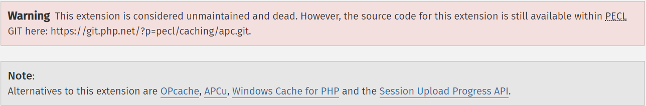 현재는 개발이 중단되었으며 opcode 캐시 기능이 제외되고 데이터 스토어 기능만 지원하는 APCu로 대체되었다.