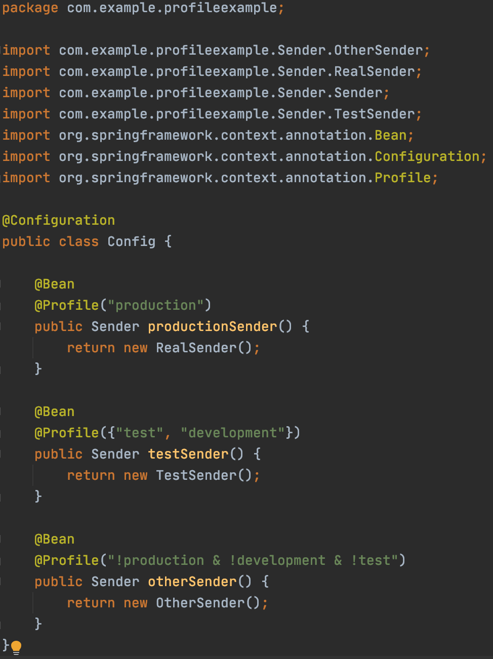 위 코드만 봐도 @Profile이 어떻게 사용되는지 대충 알 수 있다.